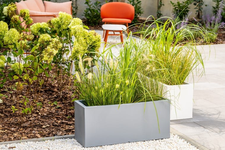 Nie ulega wątpliwości, że w donicach Long Slim przepięknie prezentują się zarówno trawy ozdobne jaki popularne tuje.