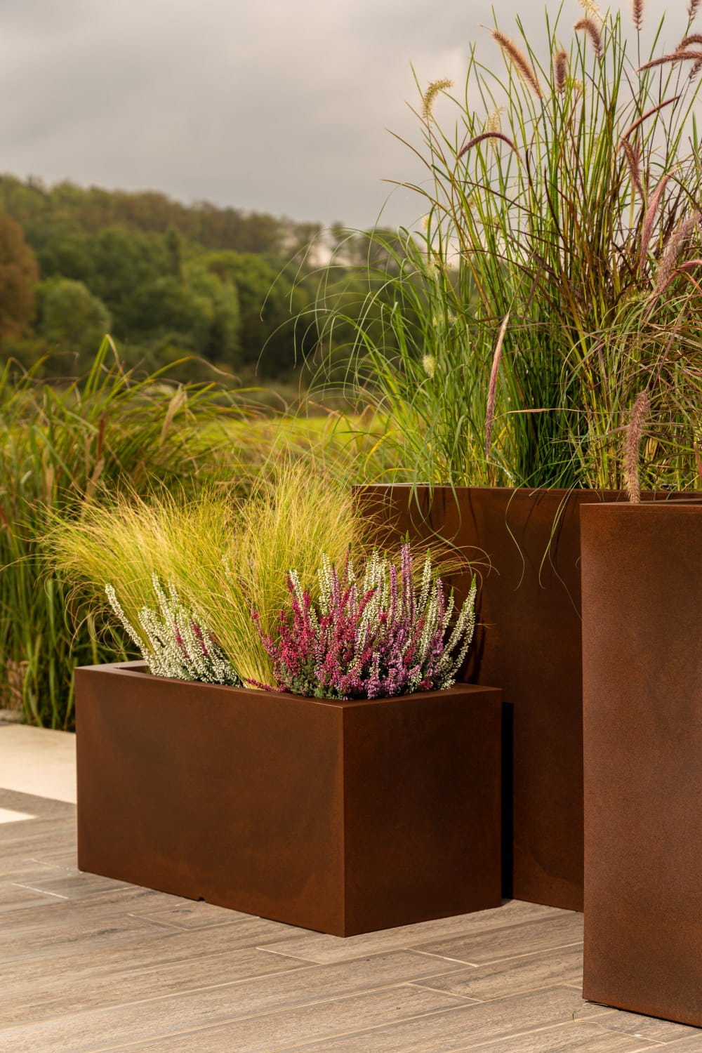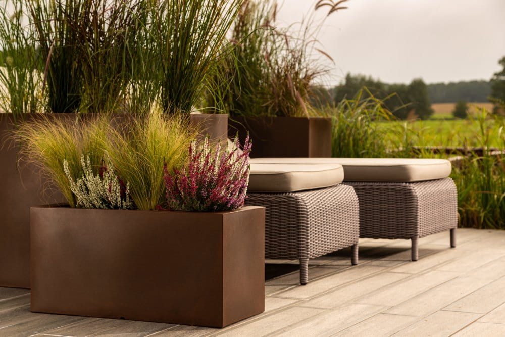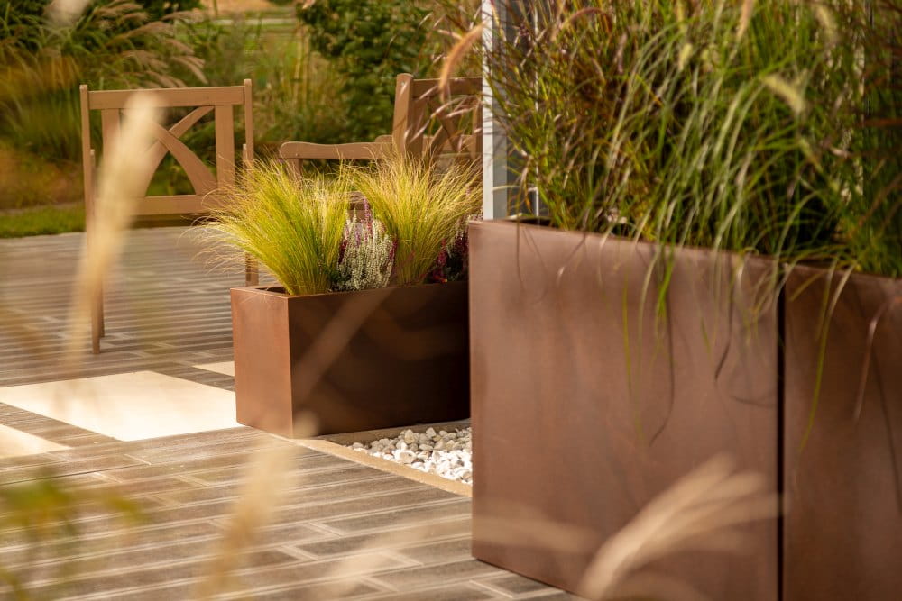 Podłużna prostokątna donica Lungo corten effect pojedyncze dno