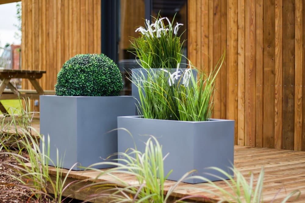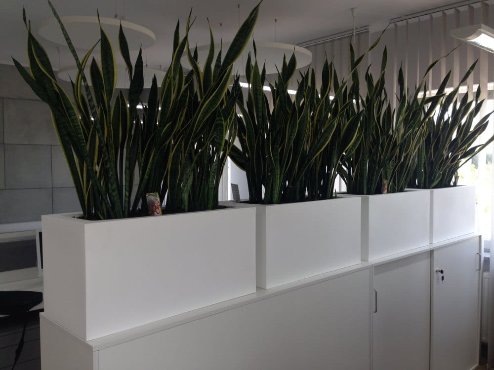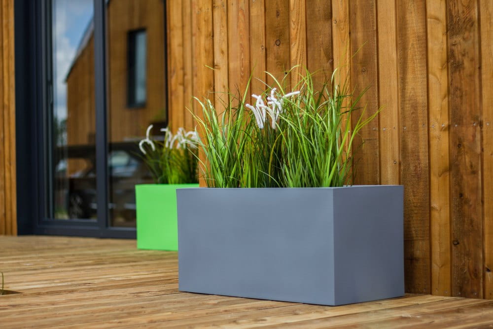 Te podłużne designerskie donice da się wkomponować w aranżację dużego salonu z ogromnymi oknami lub ustawić na tarasie czy balkonie.
